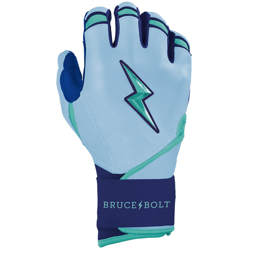 HIGHEST QUALITY, MOST DURABLE BATTING GLOVE IN BASEBALL: Each pair of BRUCE BOLT batting gloves are handmade by skilled craftsmen using only the highest quality 0.9mm Cabretta leather and stitching techniques which makes our gloves buttery soft but more durable than any other glove on the market.